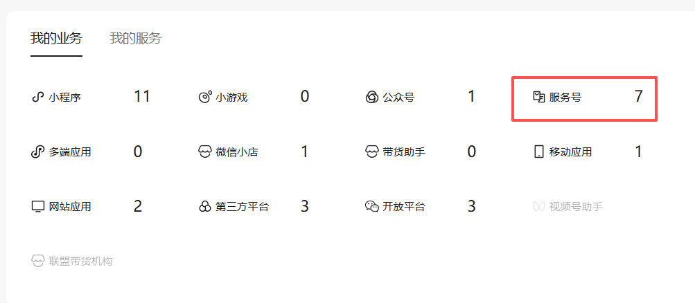 点击上述图片中服务号,切换到服务号视图。如下图所示: